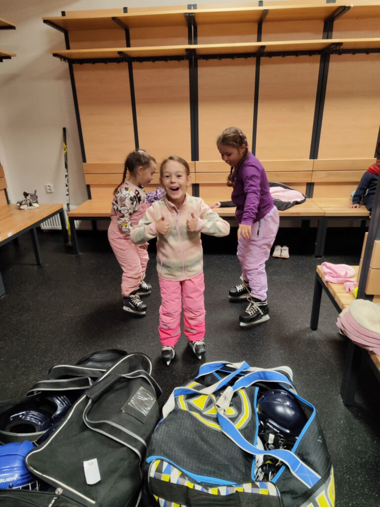 S našimi předškoláky jsme se zúčastnili bruslení na zimním stadionu Sareza. Dětem bylo nejdříve potřeba zvolit správnou velikost bruslí, nasadit přilbu a hurá na led. Pro hodně dětí to dnes bylo poprvé, co stály na bruslích, ale na konci hodiny by to nikdo nepoznal. Díky trpělivým trenérům, kteří je seznámili se základy, po chvíli všichni bruslili jako draci. Většina sice prozatím s pomocí opěrné branky, ale bylo vidět, že je to moc baví. Těšíme se, že si akci budeme moci brzy zopakovat.