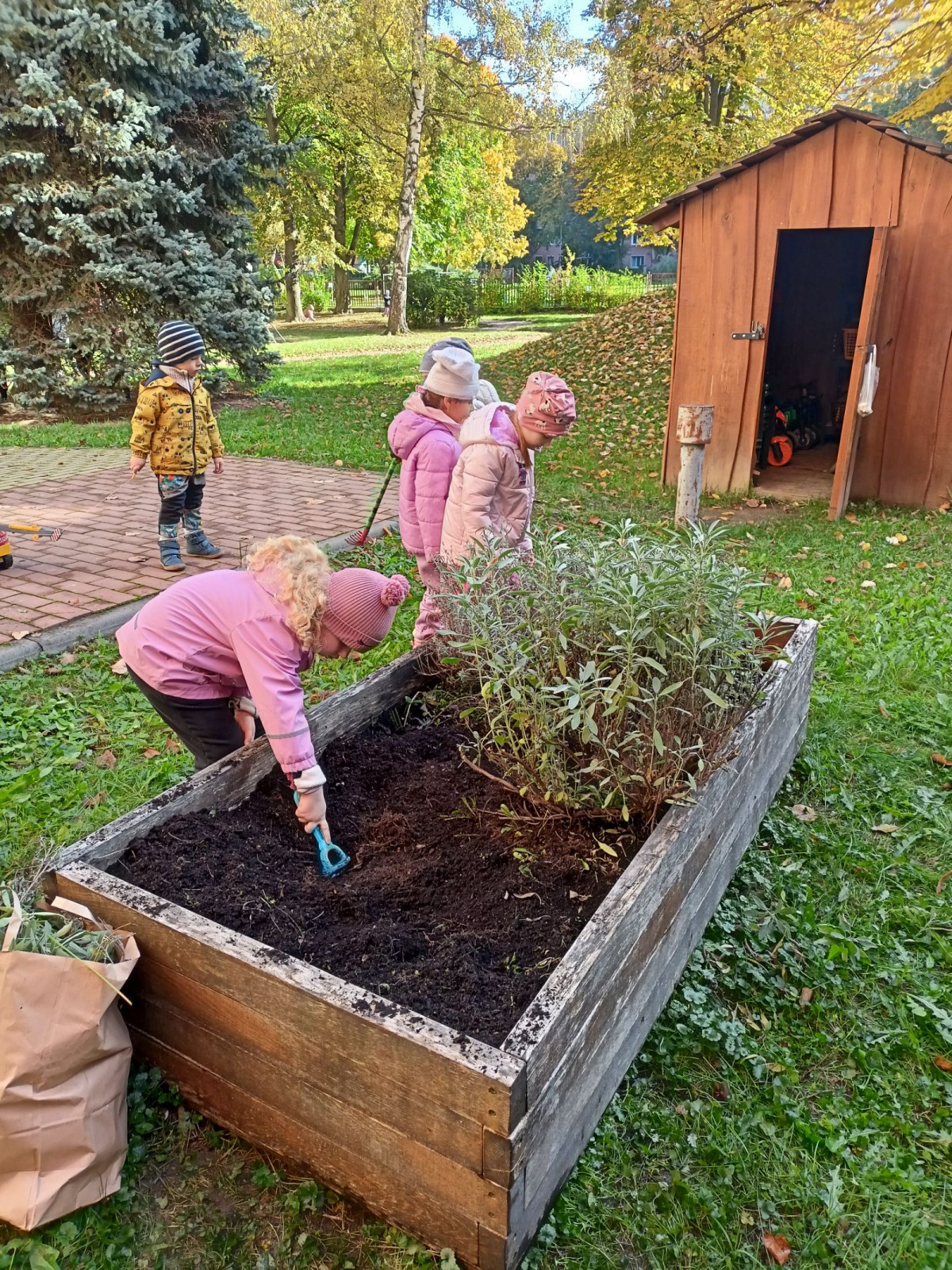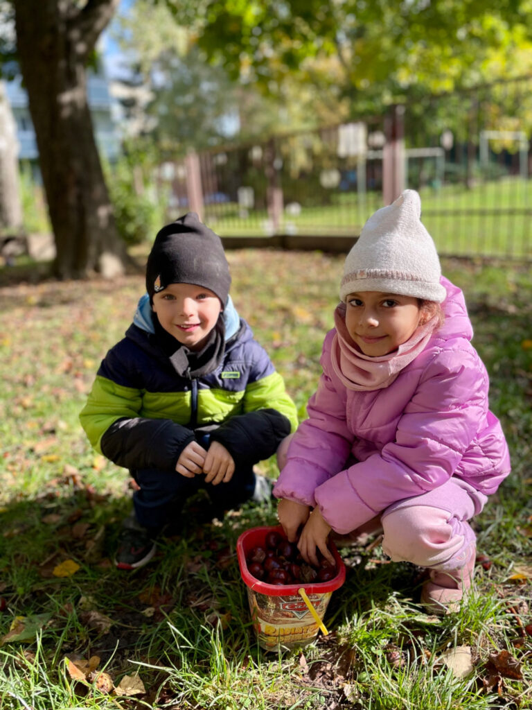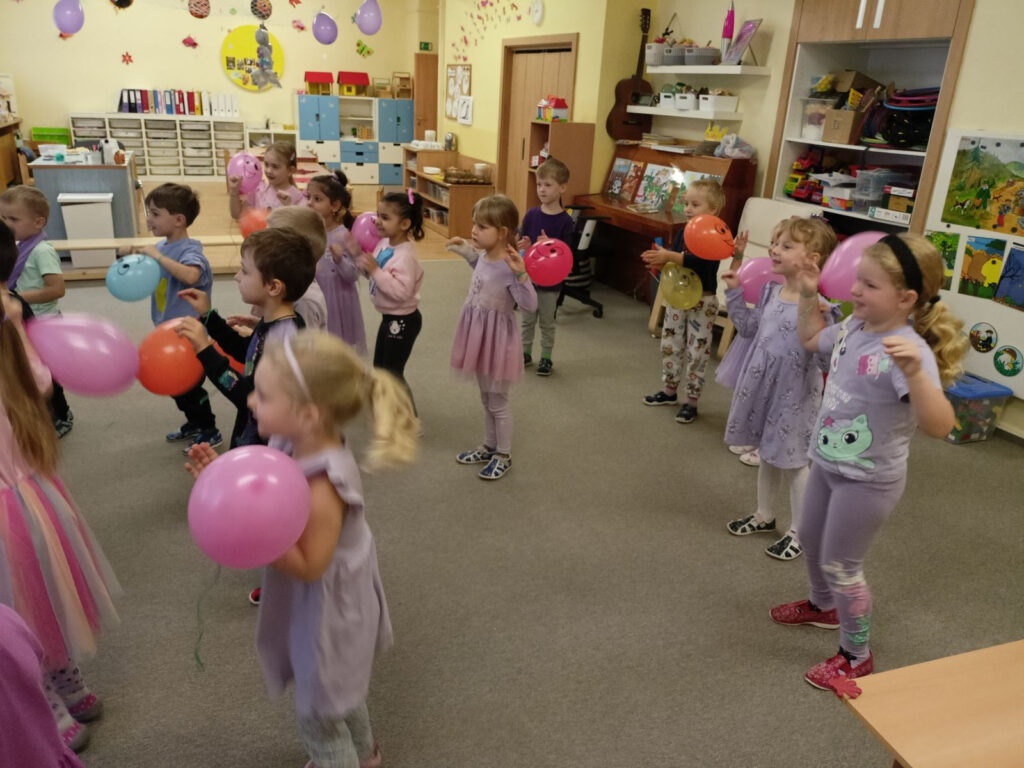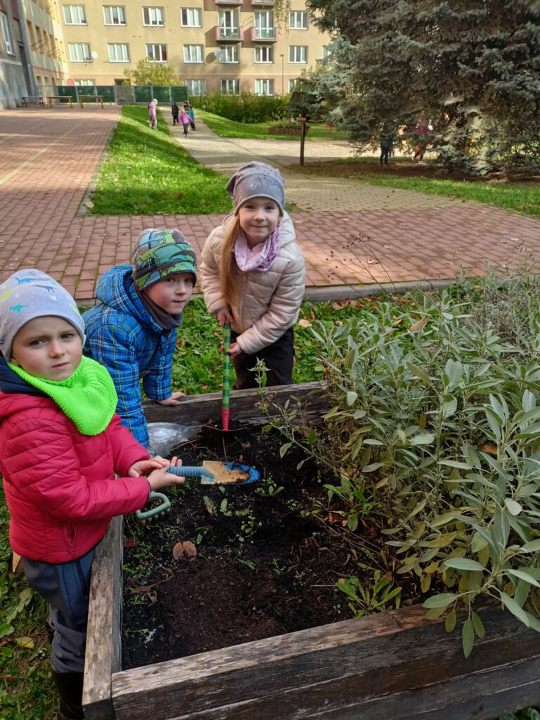 V aktuálním období se věnujeme tématu PODZIM. Ukazujeme si, co se děje kolem nás – jak je krásně barevná příroda, sbíráme listy, kaštany. Vytvářeli jsme létající draky z různých stavebnic, kostek, PET víček a jiných materiálů podle kreativity dětí. Hráli jsme si na dráčky při pohybových aktivitách. Připomněli jsme si básničku Jak se pozná podzim a proto, že v ní zaznívá „vítr se opírá o vrátka, ke spánku chystá se zahrádka“ , tak jsme si názorně ukázali, co to znamená a jako zahradníci jsme připravili k zimnímu odpočinku naše vyvýšené záhony na školní zahradě. Toto roční období ale přináší i ochlazení a zhoršení počasí, s tím bývají spojená častější onemocnění dětí, a proto i v mateřské škole zlepšujeme fyzickou kondici dětí – v tomto školním roce jsme opět začali chodit do blízkého fitcentra a nově jsme zařadili atleticko-gymnastickou přípravku v tělocvičně ZŠ Dětská. Také jsme měli letošní první narozeninovou oslavu, ze které byly děti nadšené.