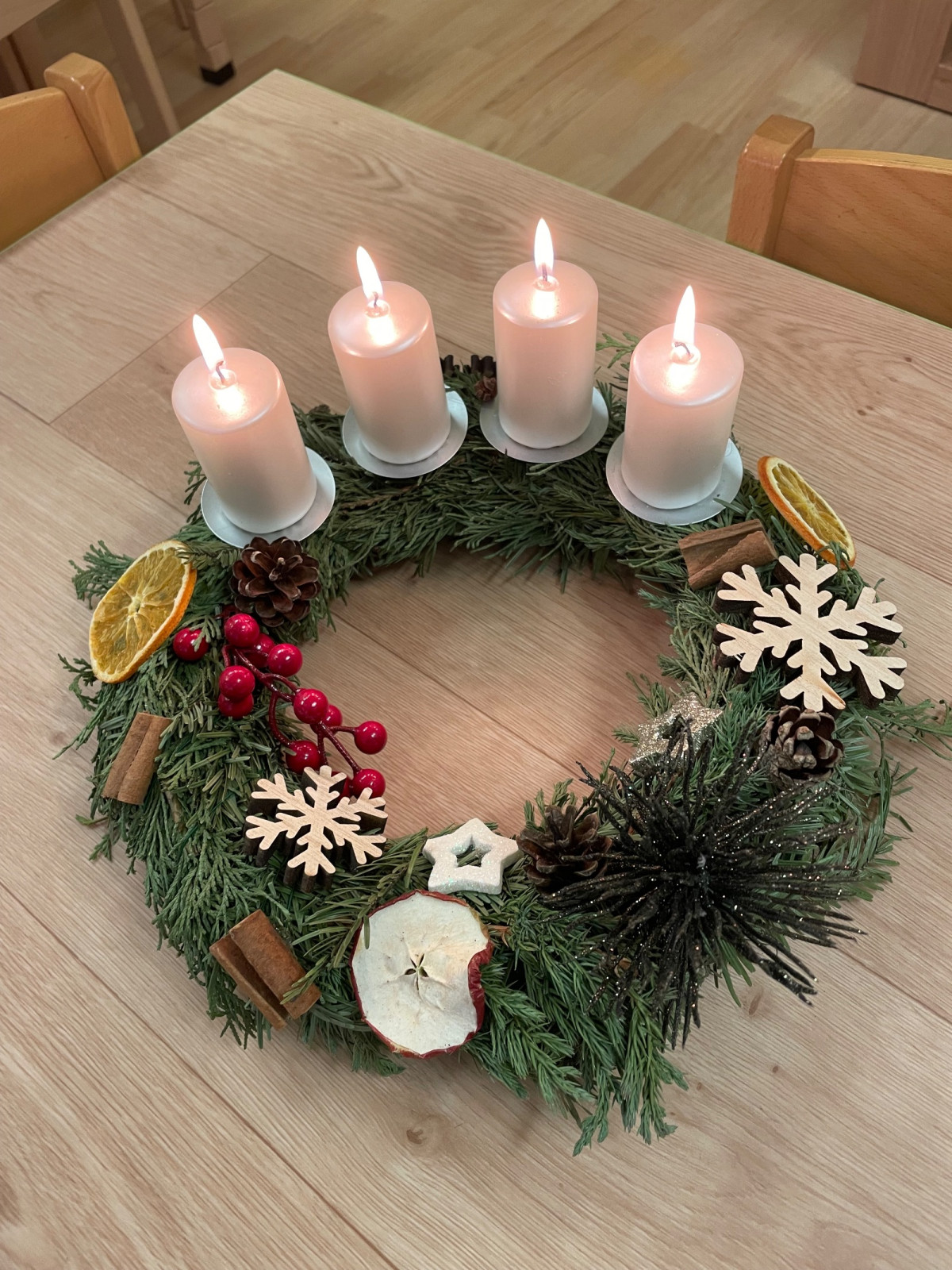 Poslední týdny před koncem roku, kdy nás čekají nejkrásnější svátky roku- Vánoce, jsme si toto čekání a těšení zpestřili s dětmi nejrůznějšími činnostmi a akcemi. První nás navštívila známa trojice- Mikuláš, čert a anděl. Děti se sice bály, ale nakonec si nikoho čertík neodnesl. V tyto předvánoční dny nás také čekalo spousta předvánočního tvoření- malovali jsme Betlém, vytvářeli jsme stromečky, pekli jsme perníčky, ozdobili jsme si také strom před naší školkou a třídu ozdobili adventním věncem a věncem na dveře. Děti se pilně připravovaly na vánoční besídku, kde si také s rodiči vyrobily vánoční ozdobu na stromeček. Následovalo zdobení stromečku ve třídě, zpěv a poslech vánočních koled a čekání na příchod Ježíška. Děti se v těchto týdnech seznámily s vánočními zvyky a tradicemi a dokonce jsme si udělaly pokus, kdy jsme rozpouštěli sníh a sledovali zda je opravdu čistý . Ochutnali jsme také vánočku a cukroví od šikovných maminek. Přejeme Všem krásné Vánoce a poklidné prožití svátků.