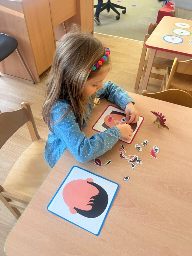 U stolečků děti rozvíjely především jemnou motoriku, zrakové vnímání i tvořivost. Modelovaly z plastelíny obličej a vyjadřovaly různé emoce, čímž se učily lépe vnímat samy sebe i ostatní. Procvičovaly zrak při úkolech „Co do řady nepatří?“ a při hledání shodných obrázků, grafomotoriku si upevňovaly obtahováním linie oka a správným úchopem tužky. Při skládání slov podle vzoru rozvíjely předčtenářské dovednosti. Velmi je bavila také tvorba obličeje dle vlastní fantazie a přiřazování obrázků ke smyslům, kde zapojily i své logické uvažování. Hmat si procvičily při tvoření v písku a hledání ukrytých „diamantů“, při výtvarné tvorbě úst a sluch při hře na zvonečky.