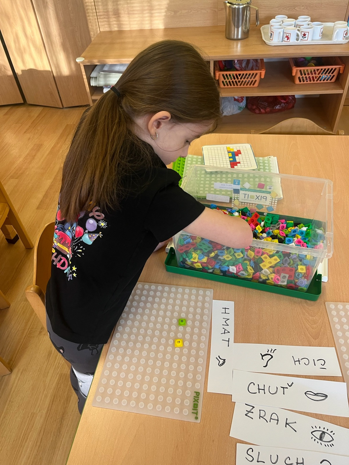 U stolečků děti rozvíjely především jemnou motoriku, zrakové vnímání i tvořivost. Modelovaly z plastelíny obličej a vyjadřovaly různé emoce, čímž se učily lépe vnímat samy sebe i ostatní. Procvičovaly zrak při úkolech „Co do řady nepatří?“ a při hledání shodných obrázků, grafomotoriku si upevňovaly obtahováním linie oka a správným úchopem tužky. Při skládání slov podle vzoru rozvíjely předčtenářské dovednosti. Velmi je bavila také tvorba obličeje dle vlastní fantazie a přiřazování obrázků ke smyslům, kde zapojily i své logické uvažování. Hmat si procvičily při tvoření v písku a hledání ukrytých „diamantů“, při výtvarné tvorbě úst a sluch při hře na zvonečky.