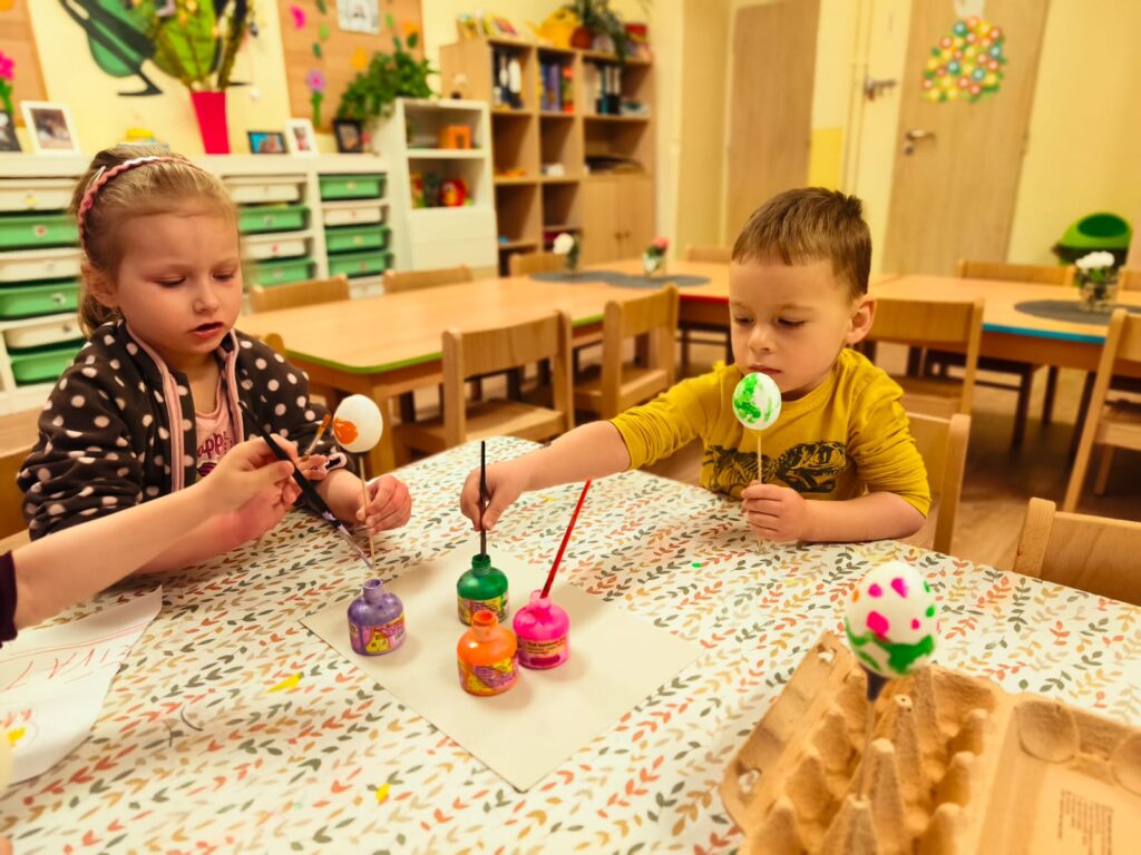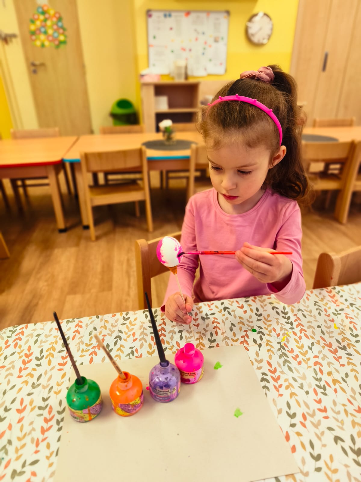 V rámci tematického celku „Velikonoční těšení“ se děti seznámily se symboly Velikonoc a jejich významem. Společně jsme zhlédli pohádku Chaloupka na vršku – Jak se pomlázky ztratily, která dětem přiblížila velikonoční tradice hravou formou. Děti se zapojily do tvořivých aktivit – zdobily vajíčka a procvičovaly jemnou motoriku při práci s různými materiály. Naučily se velikonoční koledu a opakovaly jarní písně. Také jsme se věnovali pozorování probouzející se přírody. Děti sledovaly klíčení fazolek ve sklenici a domů si každý odnesl svůj květináček s klíčící řeřichou. Věříme, že si děti společné aktivity užily a měly radost z nových zážitků. Přejeme Vám krásné a pohodové velikonoční svátky.