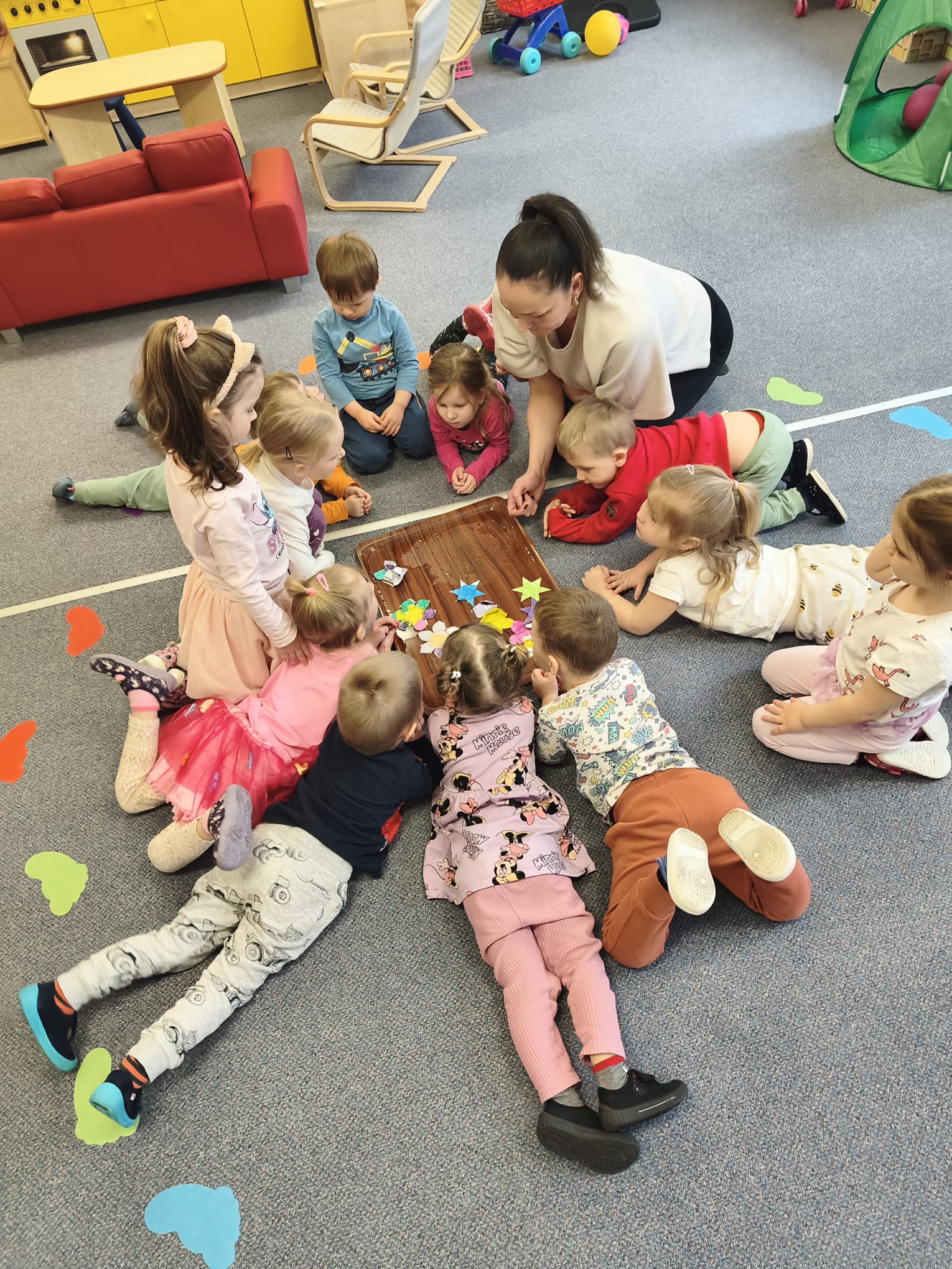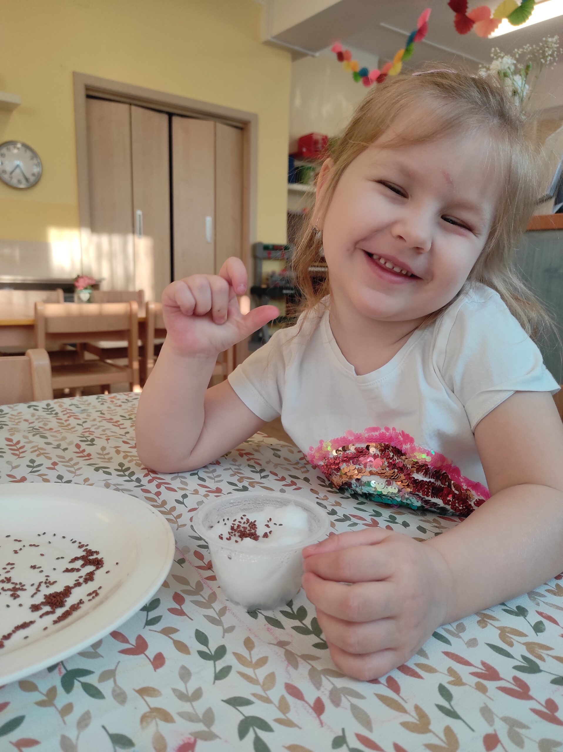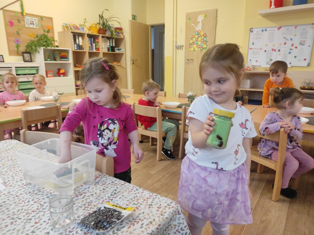 Děti se seznámily s pohádkou o Křemílkovi a Vochomůrkovi a společně jsme si povídali o tom, co semínko potřebuje k růstu. Vyzkoušeli jsme si sázení řeřichy i fazole a děti mohly pozorovat, jak semínka postupně klíčí. Téma jsme rozvíjeli i v dalších činnostech – děti kreslily a tvořily květiny, zpívaly jarní písničky s pohybem, dramatizovaly pohádku Tři prasátka a procvičovaly si jemnou motoriku i grafomotoriku. Venku si také procvičovaly stříhání dětskými nůžkami. Společně jsme pracovali i na pracovním listu, kde jsme procvičovali posloupnost vývoje semínka. Nechybělo ani čtení pohádek a rozhovory v komunitním kruhu. Děti pracovaly s velkým zájmem a nadšením a téma je velmi bavilo.