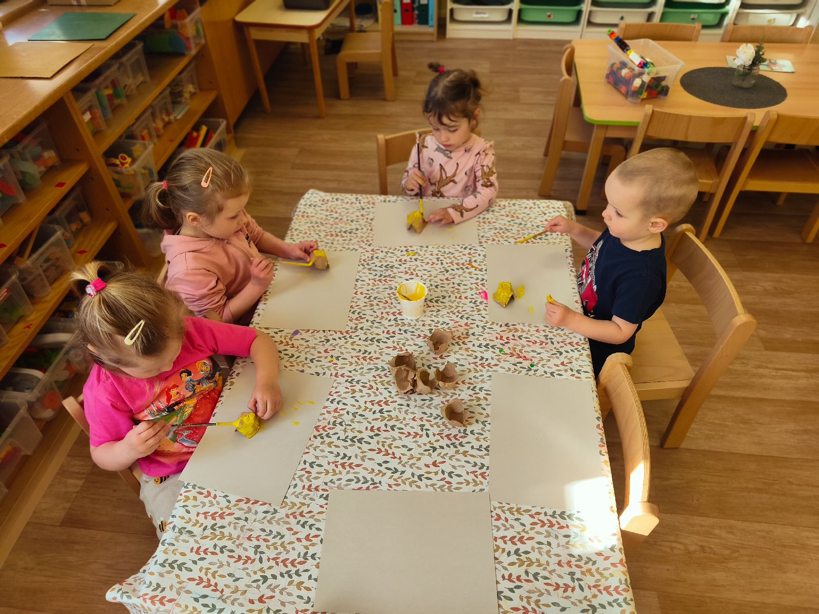 Děti se seznamovaly s domácími zvířaty a jejich významem pro člověka. Prostřednictvím her a praktických činností si vyzkoušely péči o zvířata a rozvíjely své poznatky o jejich životě. Společně jsme stavěly farmu z dřevěných kostek, čímž děti rozvíjely svou představivost, spolupráci i jemnou motoriku.