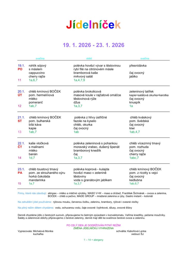 Vnitrní řád školní jídelny platný od 13. 10. 2025