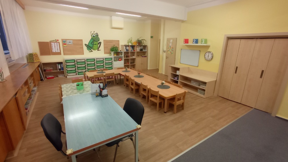 Třída disponuje bezpečným a podnětným prostředím, které podporuje samostatnost, pohyb, hru i objevování. Hračky, pomůcky a nábytek jsou přizpůsobeny nejmladším dětem, aby se cítily jistě a mohly se postupně zapojovat do života mateřské školy.